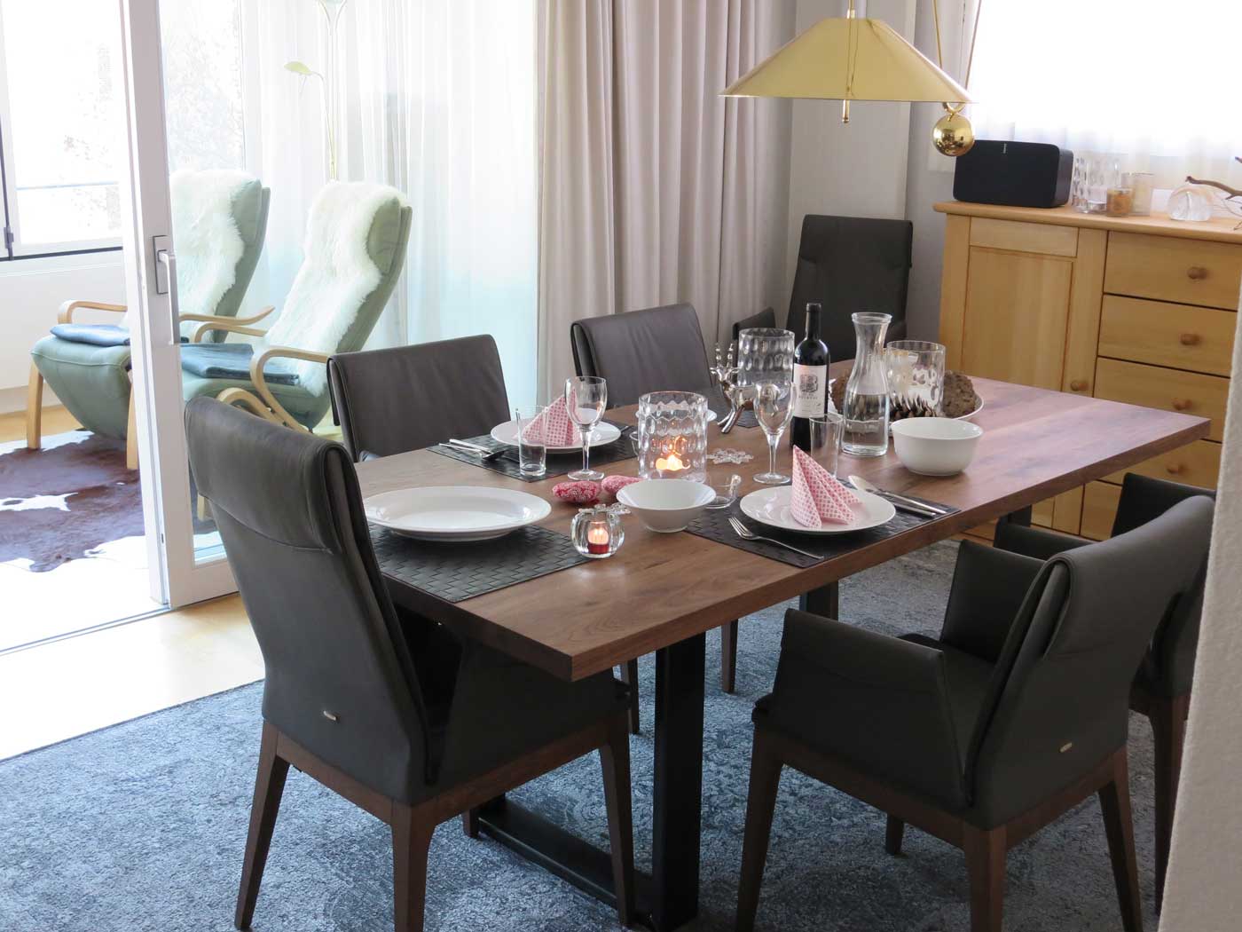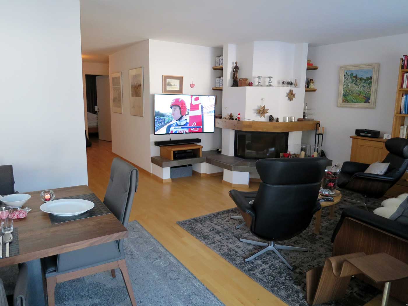 Die Wohnung liegt in einem sehr modernen Wohnkomplex, der um das Jahr 2000 entstanden ist. Auch wenn die Wohnung von aussen die moderne Davoser Architektur widerspiegelt, so gelang es im Inneren der Wohnung eine Brücke zu schlagen zwischen moderner Ausstattung und besonderem Graubündner Einrichtungs-Flair. Natürlich lassen auch die vielen technischen Einrichtungen in der Wohnung wie zum Beispiel die komplette Kueche mit Geschirrspüler, mit stilvoller Maestro-Nespresso-Kaffeemaschine etc. genauso wie die „state-of-the-art“ elektronische Ausstattung der Wohnung mit Flachbild TV, High-speed Internet und WLAN, einem weiteren Flachbild TV (in einem der Schlafzimmer), SONOS-Hifi (in jedem Raum) und noch viel mehr (so gut wie) keine Wünsche offen. Darüberhinaus finden Sie eine Waschmaschine und einen Wäschetrockner direkt im Nebenraum zur Wohnung.
