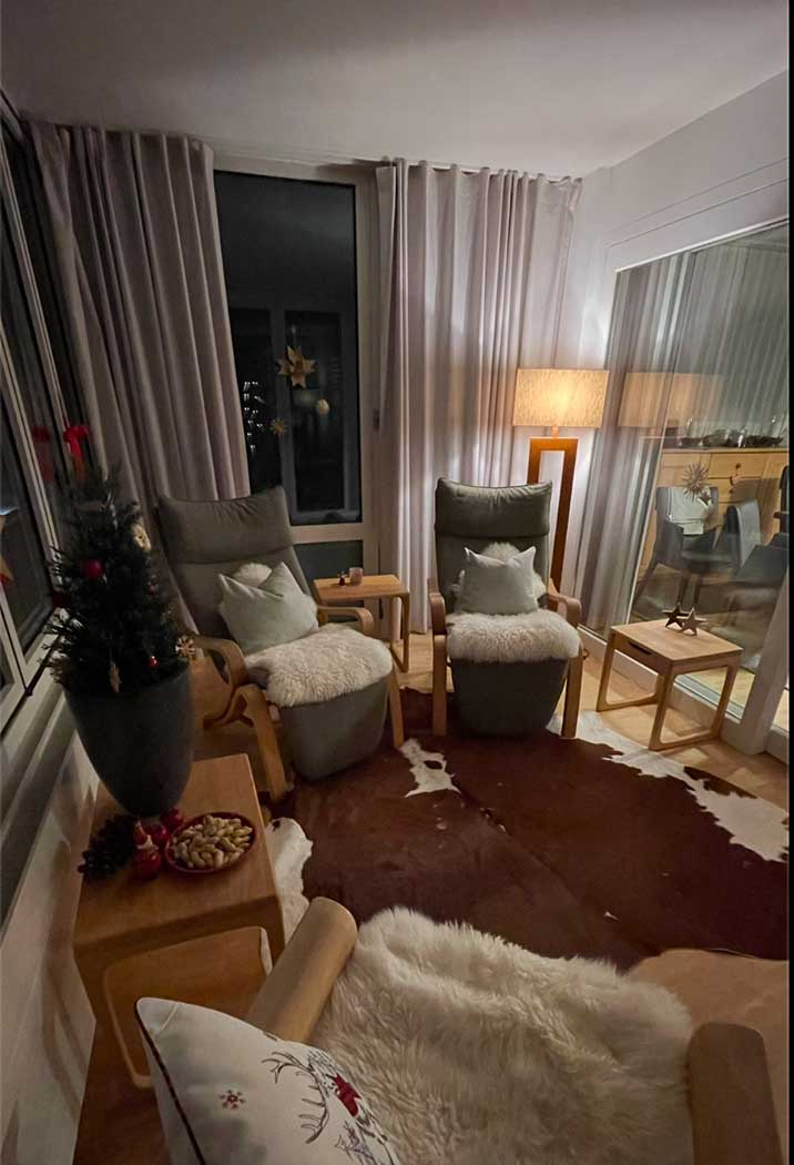 Die Wohnung ist aber nicht nur komplett ausgestattet sondern auch – nicht zuletzt wegen des wunderschönen Kamins im Wohnzimmer – “ur-gemütlich“. Sie bietet nebenbei auch viel Platz durch einen Wintergarten (dessen Fenster komplett geöffnet werden können) sowie einen großen Balkon.