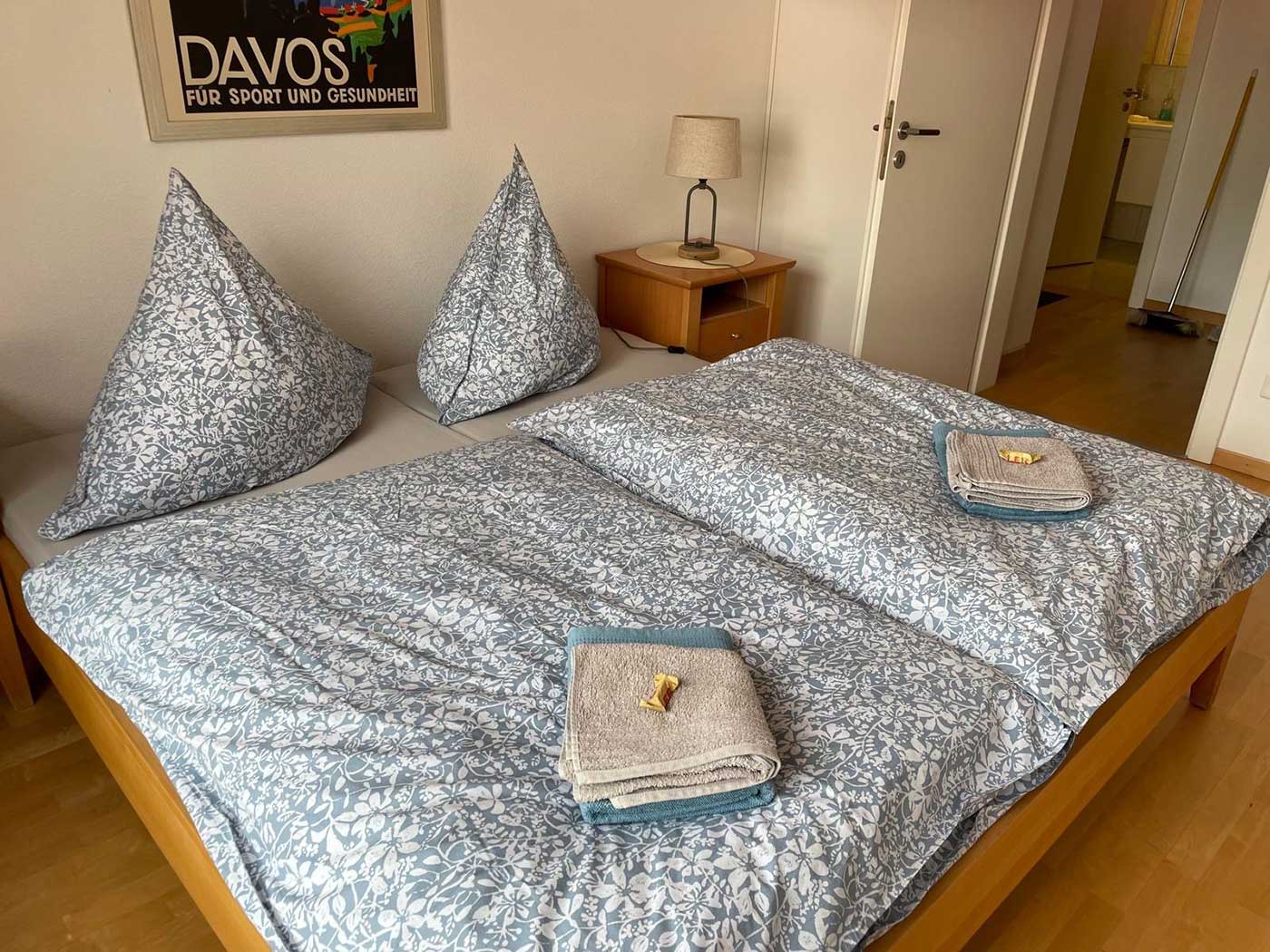 Obwohl die Wohnung etwas mehr am östlichen Dorfrand von Davos liegt, sind sie von dort zu Fuß in kürzester Zeit am Bahnhof Davos-Dorf bzw. im Zentrum von Davos-Dorf (ca. 8 min zu Fuß) oder – falls Sie lieber im Grünen spazieren gehen wollen – in ca. 15 min am Davoser See. Zur Parsenn-Bahn sind es ebenfalls nur ca. 10 min zu Fuß.